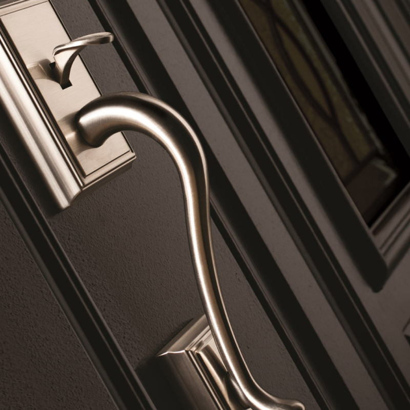 The Smooth-Star Full Lite Entry Door blends modern style, energy efficiency, and durability with a sleek Granite finish and elegant Saratoga glass.
